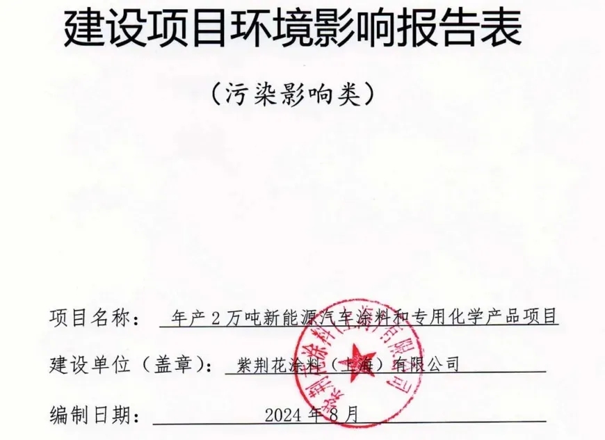 紫荊花涂料(上海)有限公司計劃總投資1835萬元新建年產(chǎn)2萬噸新能源汽車涂料和專用化學(xué)產(chǎn)品項目,項目建成后可實現(xiàn)年產(chǎn)值3億元,這是其首次建設(shè)新能源汽車涂料生產(chǎn)線。