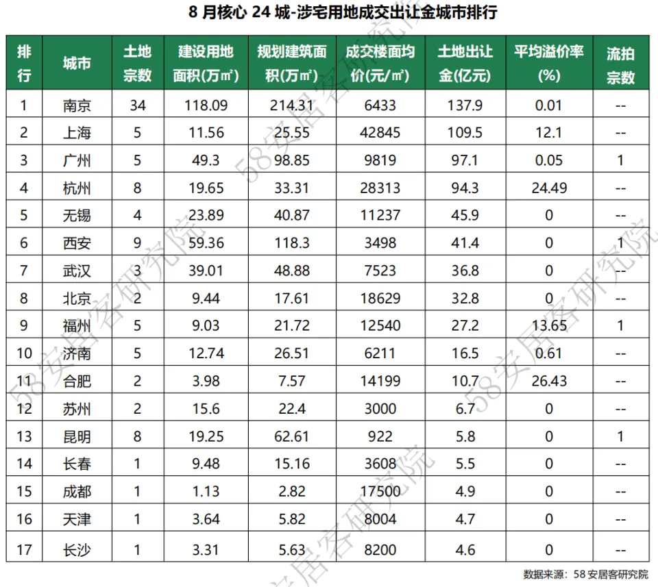 進入2024年,多地計劃供地規模仍有下滑趨勢,“少量多次”的供地模式也在沿用,加之房企拿地熱情普遍不高,土地市場供需規模持續“縮水”。從土地出讓金24城市榜單來看,重點一二線城市一如往期,收金排行更為靠前,近半數城市平均溢價率為0。