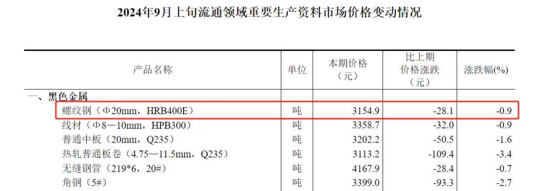 近期,鋼貿圈流傳著一條消息,說鋼鐵價格已跌至接近煤炭價格的水平。河北唐山的普通方鋼價格已創下近七年來的新低,跌至每噸2860元。國家統計局數據顯示,2024年9月上旬螺紋鋼價格3154.9元/噸,較2023年同期的3704.4下跌,下跌549.5元/噸,跌幅15%左右。