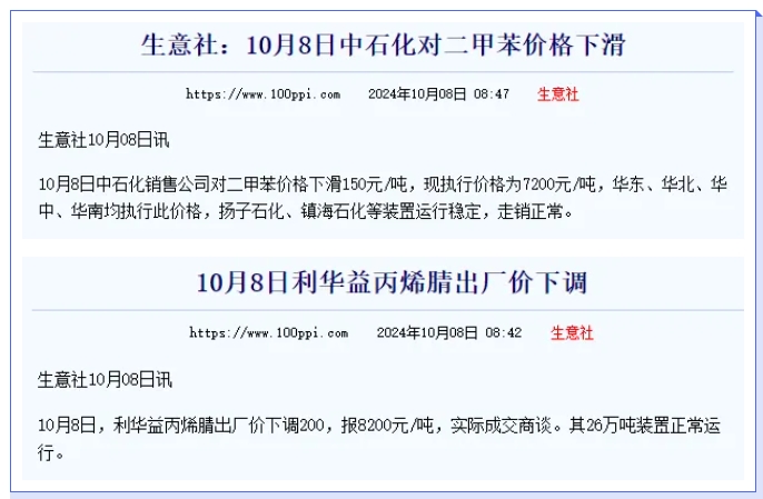 10月8日,中石化、利華益等龍頭企業(yè)宣布產(chǎn)品噸價下滑百元左右,更是坐實(shí)了旺季降價的情況。