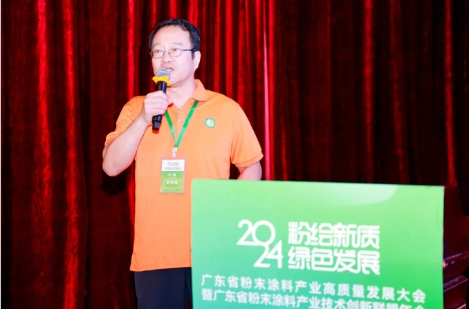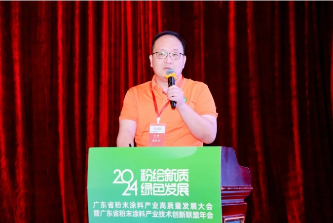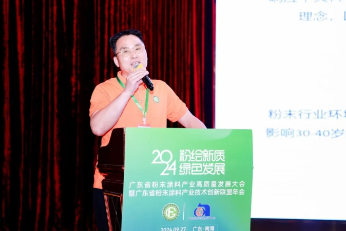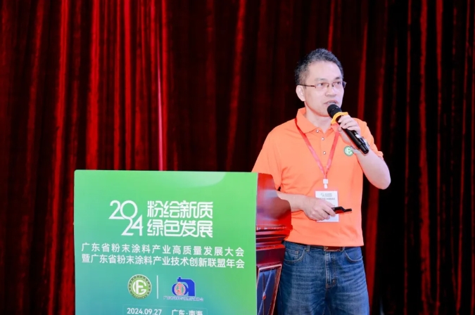 劉敏輝做《新型高效節(jié)能設(shè)備在粉末涂料行業(yè)上的應(yīng)用》報(bào)告