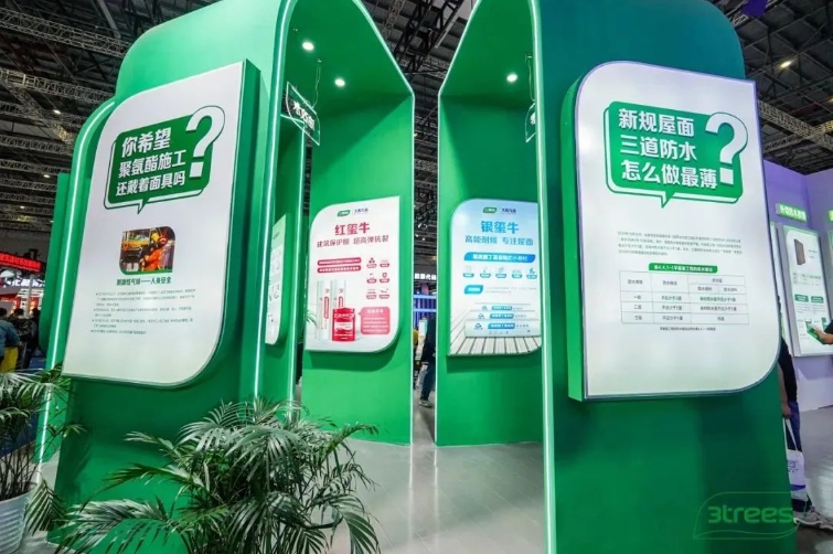 在此次2024中國防水展上,三棵樹以卓越姿態精彩亮相,全方位展示以綠色環保、科技創新驅動下的防水領域成果。未來,三棵樹防水將繼續加大創新研發投入,通過技術革新推動綠色產品,助力引領防水行業向高質量發展方向邁進。