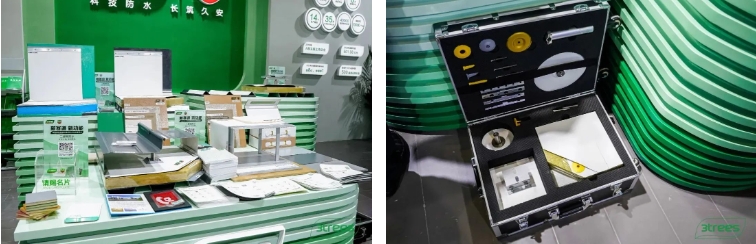 科技改變世界,創新驅動未來。三棵樹防水秉承“極致健康、極致性能、極致應用”的研發理念,致力于打造新材料、新一代、新應用的“三新”產品。在此次展會中,三棵樹展示了“長青筑”系列“零膠粉”改性瀝青防水卷材、綠意凈味系列植物油聚氨酯防水涂料、綠色環保高耐久TPO防水卷材等創新產品,以在綠色環保領域科技實力,體現三棵樹防水在建筑全產業鏈中的核心優勢。