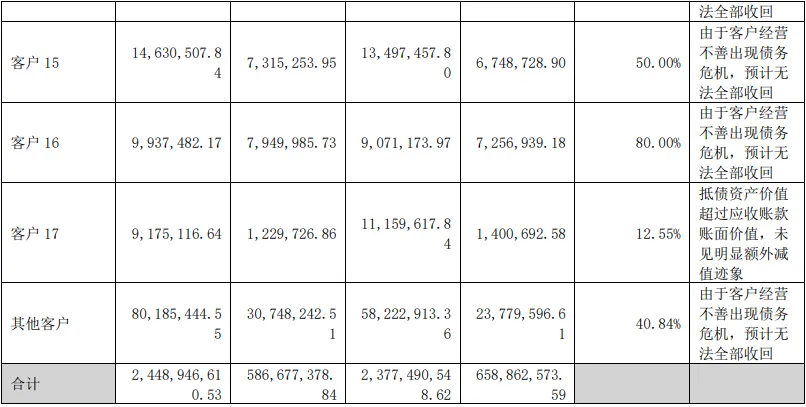 東來(lái)技術(shù)中報(bào)顯示,多位客戶100%計(jì)提的壞賬回收風(fēng)險(xiǎn)較大,預(yù)計(jì)無(wú)法收回的壞賬1700多萬(wàn)。