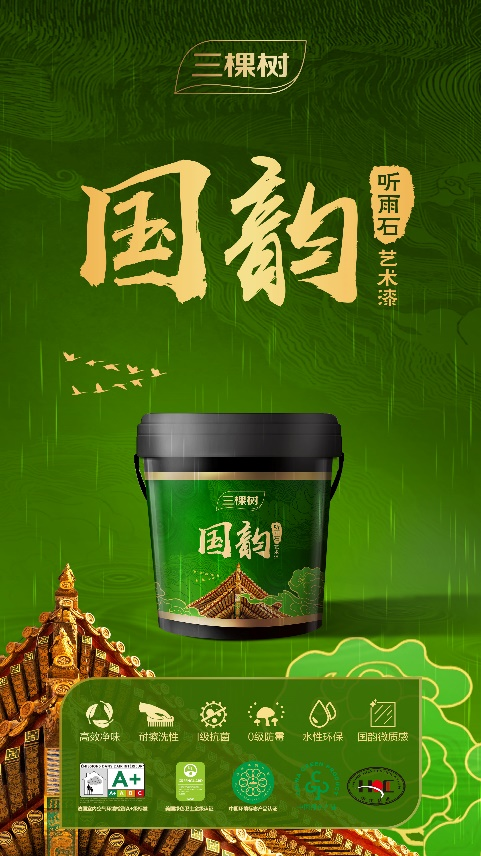 三棵樹藝術(shù)涂料國色系列的霓光漫彩、光韻流瑩,國韻系列的聽雨石,還有清影玉肌、維也納星光等明星產(chǎn)品均有參與此次煥新補(bǔ)貼活動(dòng)。產(chǎn)品不僅健康環(huán)保,獨(dú)特的東方傳統(tǒng)色彩與時(shí)尚的紋理效果更是有口皆碑。這些活動(dòng)產(chǎn)品擁有凈味、防火、抗菌、防霉、耐用等不同功能,具備強(qiáng)大環(huán)保性和功能性基因,與傳統(tǒng)國風(fēng)韻味的文化底蘊(yùn)相融合,讓美學(xué)與實(shí)用達(dá)到平衡,滿足對美好家居生活的無限向往。