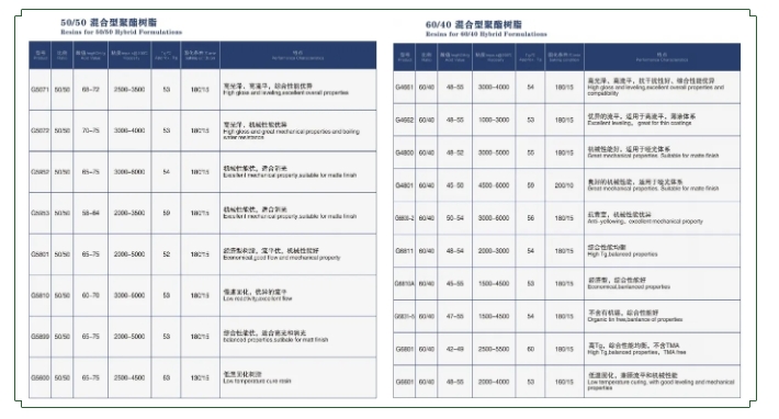 50/50混合型聚酯樹脂,呈現(xiàn)出高光澤、高流平的特點,綜合性能卓越,不僅光澤度高,機械性能也十分出色,還具備良好的耐沸水性能。60/40混合型聚酯樹脂,高光澤、高流平且抗干擾性強,綜合性能優(yōu)異,流平效果突出,機械性能良好,部分型號還具備抗黃變、機械性能優(yōu)越的特性。