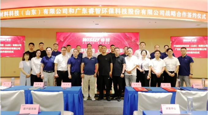 齊益新材總經理趙凱峰,睿智環科董事長王文軍、總裁楊安、執行總裁/總裁辦主任黃延鋒、執行總裁喻昌榮、副總裁兼董秘高飛,以及總部各職能部門相關負責人出席本次簽約儀式。