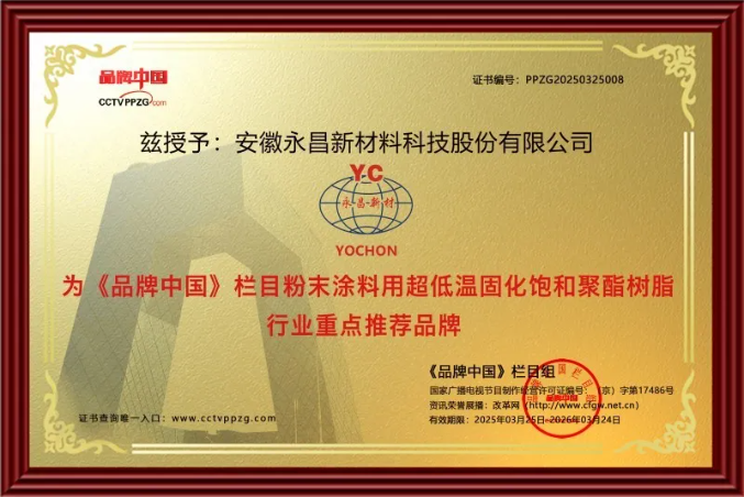 憑借強(qiáng)大自主研發(fā)能力,永昌新材料一路開拓、持續(xù)創(chuàng)新,始終堅(jiān)持在高技術(shù)壁壘和市場快速變化中進(jìn)行自我超越,堅(jiān)定與客戶和行業(yè)共同成長,業(yè)務(wù)覆蓋面和行業(yè)影響力持續(xù)擴(kuò)大,與浙江、廣東、山東、河北、湖北、四川、云南、福建等地的粉末涂料企業(yè)建立了長期穩(wěn)定的合作關(guān)系。2023年和2024年在粉末涂料用超低溫固化飽和聚酯樹脂全國細(xì)分市場占有率分別達(dá)14.81%、 20.08 %。2025年,更是憑借其在相關(guān)細(xì)分領(lǐng)域的深度應(yīng)用和廣泛創(chuàng)新實(shí)踐,榮膺“《品牌中國》欄目重點(diǎn)推薦品牌”授牌。能夠得到權(quán)威媒體的關(guān)注與認(rèn)可,是永昌新材料長期堅(jiān)持深耕產(chǎn)品質(zhì)量的結(jié)果,也是對其持續(xù)堅(jiān)持“低碳化、綠色化”轉(zhuǎn)型努力的極大肯定。