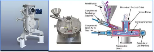 其特點是:設備復雜、研磨介質損耗以及后續干燥制程導致加工成本較高、基本不含機械雜質、粒徑較窄、晶型形態相對干法工藝較統一,單純物理粉碎、旋流分級加工形式,產品純度不受控 3、氣流對撞式粉碎:利用壓縮空氣帶領物流相互撞擊的粉碎形式(壓縮空氣~過熱蒸汽)