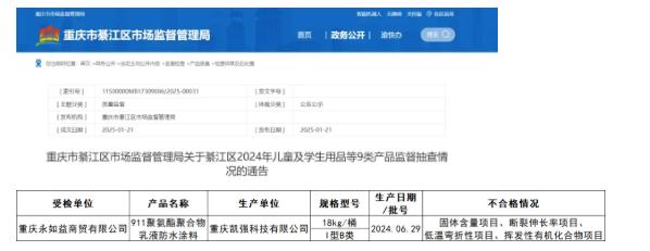 重慶市綦江區(qū)市場(chǎng)監(jiān)督管理局發(fā)布綦江區(qū)2024年兒童及學(xué)生用品等9類(lèi)產(chǎn)品監(jiān)督抽查情況。本次區(qū)級(jí)監(jiān)督抽查99批次,不合格產(chǎn)品3批次,涉及涂料1批次。