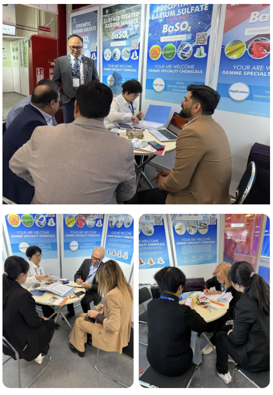 集美精化于本次展會的重點產品Gemme MikroFixe系列納米級表面處理硫酸鋇陣營,采用全新的液流微通道反應控制技術,極限粒徑尺寸20nm級別的BF-20、無機氧化物多層復合包膜處理的GM-100、BIANCFISSO等專用型新產品,極度均勻統一的粒徑范圍、非凡的應用透明度、強大的自分散性能、卓越的涂層流平觸變性、高達99的L亮度值,以及近乎100°的超高涂層光澤性……無不令BASF、Akzo.Nobel、Juton等歐洲涂料前輩高度贊譽。