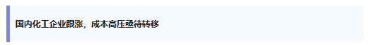 另外不少海外化工企業(yè)表達(dá)了對(duì)于加征關(guān)稅造成影響的擔(dān)憂(yōu),成本增加也直接擠壓了企業(yè)利潤(rùn)空間,如果難以通過(guò)內(nèi)部消化來(lái)應(yīng)對(duì),那么用提高售價(jià)的方式來(lái)轉(zhuǎn)移成本壓力,也是被逼無(wú)奈。