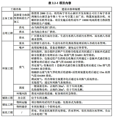 (8)測試:經過研磨粉碎、風篩篩分后的產品即為成品高附著力塑料。本項目共配備10臺小型實驗噴臺、10臺小型實驗烘箱,在剛生產的成品儲藏箱內取一勺產品(每批粉 末開始第一箱必須取樣試驗,5~6箱取樣一次,最后一箱必須取樣試驗,單條生產線 抽樣試驗量約10kg/a,12條生產線共0.12t/a),在實驗噴臺使用噴槍對鋁板進行噴涂,然后將噴涂后的鋁板送入實驗烘箱中進行粉末固化(電加熱,烘箱溫度200℃,10min),固化結束后及時將鋁板取出,自然冷卻至室溫。通過肉眼觀察后,再經過 涂抹厚度檢測、硬度監測、色差監測、篩余物監測、粒度分布檢測等,若產品經試驗 后達不到所需要求,立即停止生產,物料返回進行重新生產。此過程產生噴粉粉塵,粉末固化有機廢氣、廢鋁板。
