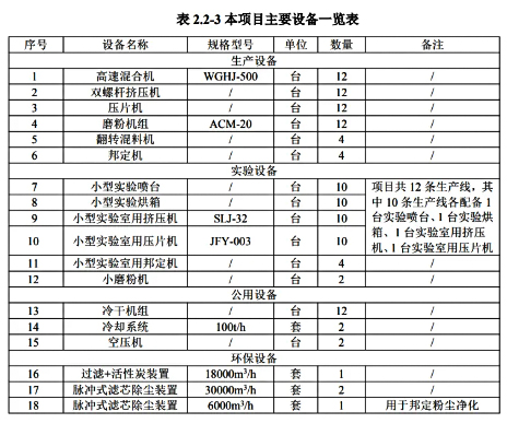 (9)包裝入庫:成品經磨粉機磨碎后經設備自帶的自動稱量系統稱量后包裝,裝過程有少量包裝粉塵產生。試驗合格產品包裝入庫待售。 此外,每批次產品正式生產前,為確保產品質量,滿足客戶要求,會在實驗室使用實驗室用擠出機、壓片機、小磨粉機等實驗設備進行試制(本項目共配備10臺實驗室用擠壓機、10臺實驗室用壓片機),確保滿足客戶需求后正式投入生產,實驗過程有粉塵以及有機廢氣產生。