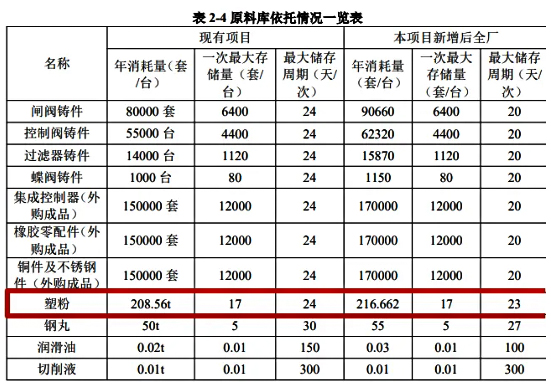 本項目噴粉工序消耗量=1.4*400*2170.202*10-6/(100%*70%)t/a=1.736t/a。