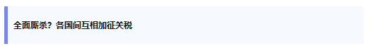 全球貿易局勢波譎云詭,海外諸多經濟體對中國加征關稅,已使我國相關產業面臨不小挑戰。然而,這一緊張態勢絕非僅局限于對中國的貿易政策,實際上,各經濟體之間也陷入了相互“廝殺”的局面。這其中不乏美國、歐盟、加拿大等彼此間的“針鋒相對”,這種錯綜復雜、相互交織的貿易摩擦,反映了當前全球貿易環境中的緊張關系和政策對抗。