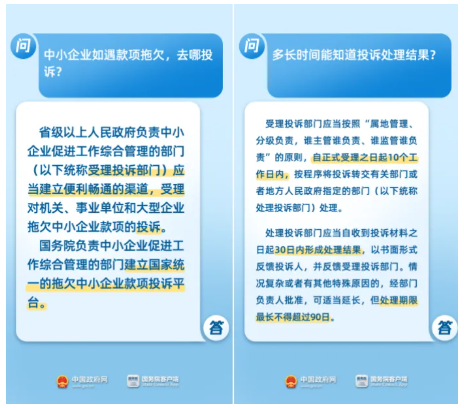 根據802號文件規定,機關、事業單位從中小企業采購貨物、工程、服務,應當自貨物、工程、服務交付之日起30日內支付款項,付款期限最長不得超過60日;大型企業從中小企業采購貨物、工程、服務,應當自貨物、工程、服務交付之日起60日內支付款項。