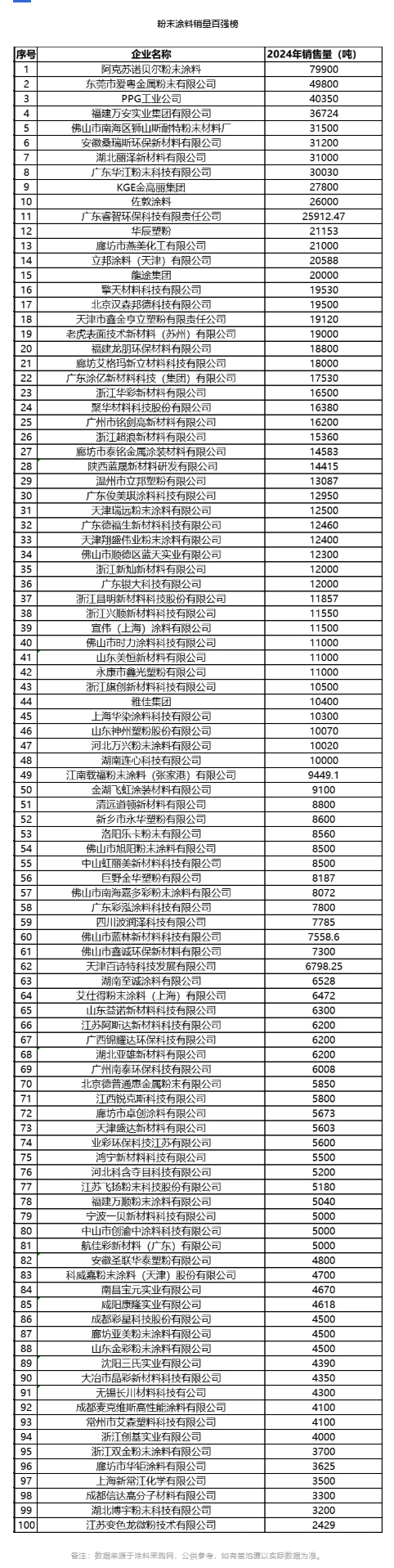 在行業(yè)整體承壓背景下,頭部企業(yè)的增長(zhǎng)動(dòng)能呈現(xiàn)顯著分化。涂料采購網(wǎng)最新披露數(shù)據(jù)顯示,立邦涂料(天津)有限公司同比暴漲110% ,天津市鑫金亨立塑粉有限責(zé)任公司亦以逾90%的增速強(qiáng)勢(shì)突圍,二者共同構(gòu)成2024年粉末涂料百強(qiáng)榜的增長(zhǎng)雙引擎。