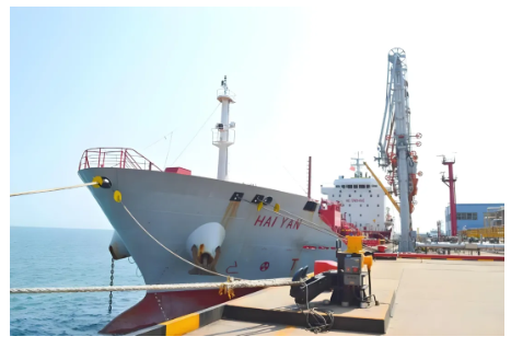 作為海灣化學環氧氯丙烷項目的核心原料,粗甘油的穩定供應是項目投產的關鍵。前期,海灣港務董家口液體化工碼頭進行了裝卸設施改建項目,重點對碼頭原乙醇工藝管道及裝卸設施進行改建,連接公共管廊至海灣化學罐區。由于粗甘油粘度較大,與以往輸送的貨種特性不同,僅靠船泵難以將物料有效輸送到10公里外的海灣化學廠區。為此,此次接卸作業創新性地采用中轉泵增壓輸送工藝。這一技術使用不僅縮短原料運輸周期,更降低物流成本,為項目后續高效運行奠定基礎。