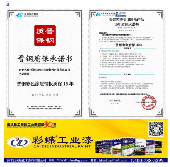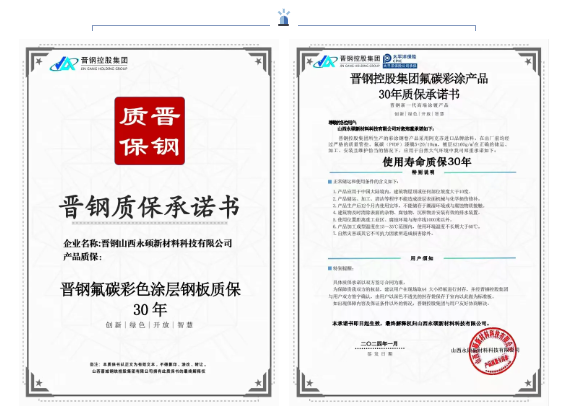 在建筑材料的演進歷程中,彩涂鋼板以卓越的性能和美觀的外觀,已成為現代建筑不可或缺的重要材料。作為行業領軍企業,晉鋼控股集團憑借雄厚的技術實力和嚴格的質量管控,推出了高端彩涂產品。其中晉鋼彩色涂層鋼板質保15年,晉鋼氟碳彩色涂層鋼板質保30年,樹立了行業新標桿。這一突破性的質保承諾,不僅彰顯了晉鋼對產品品質的自信,更體現了企業推動行業高質量發展的責任擔當。