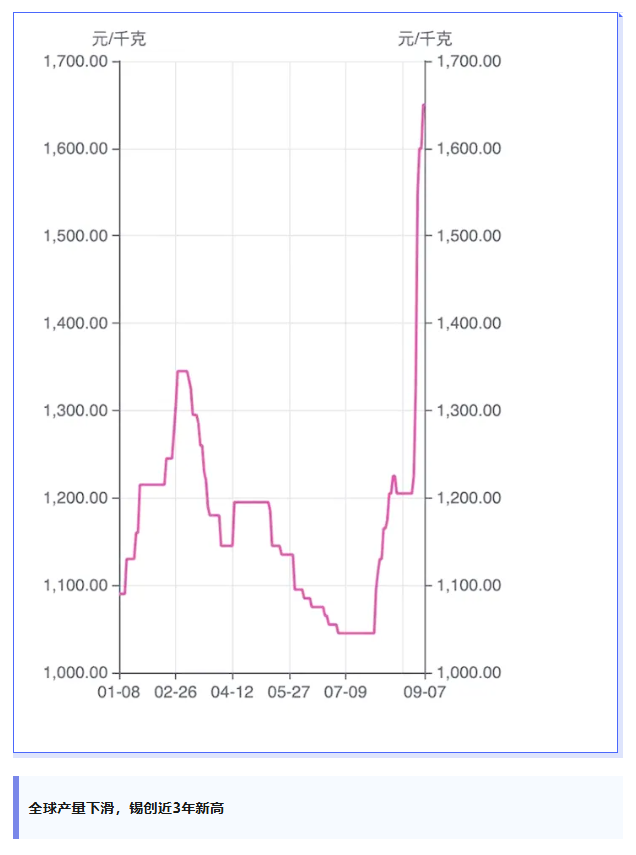 3月中旬國內外金屬錫期貨市場大漲,倫敦金屬交易所的基準錫價漲至每噸37000美元,為2022年6月8日以來的最高水平。SMM1#錫現貨3月14日的報價為287000—290000元/噸,日漲23200元/噸,主要原因是供給量下滑。