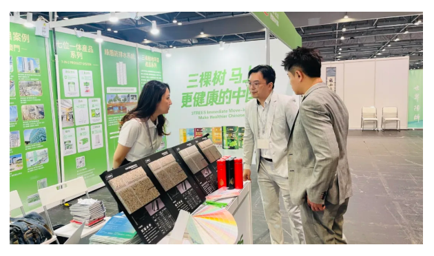 展會現(xiàn)場,三棵樹重點展出的“綠盾防排水系統(tǒng)”與高性能地坪漆系列,其強大的場景適應性和可靠性備受來自香港及其它國家和地區(qū)的專業(yè)觀眾矚目,與會人員共同探討綠色建材技術在當?shù)厥袌龅膹V泛應用前景與潛在合作機遇。三棵樹“綠盾”系統(tǒng)通過創(chuàng)新防排結合設計,可有效杜絕種植頂板滲漏、降低工程造價;三棵樹高性能地坪漆系列憑借高強度、耐磨損、耐化學腐蝕、防靜電等優(yōu)異性能,已成功應用于港澳地區(qū)多個停車場、物流中心、工業(yè)廠房及公共空間。