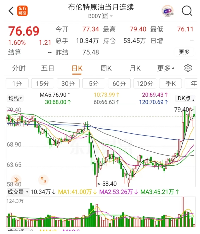 受國際形勢變化的影響,6月23日布倫特原油2508盤內是高上漲至81.4美元,自6月份以來上漲23%,再創新高。