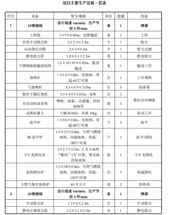 在噴漆工藝方面,該項目采用了UV工藝和PU工藝。這兩種工藝在噴涂底漆或中涂漆時使用相同材料,僅面漆有所不同。具體而言,汽車件和摩配件噴涂UV面漆,家電件則噴涂PU面漆。