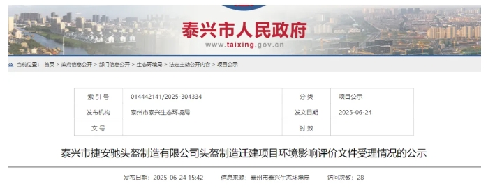 項目建成后,形成年產摩托車頭盔20萬個、電動車頭盔5萬個的生產能力。本項目勞動定員40人,年工作300天,晝間兩班制,每班工作8小時,不設食堂及住宿。本項目已于2025年5月16日在泰興市數據局取得備案,項目代碼:2505-321283-89-01-199523.備案證號:泰數據備〔2025〕2532號。