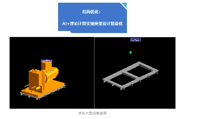 針對(duì)傳統(tǒng)大型設(shè)備整體框架座架物量多、焊接量大、笨重等問(wèn)題,貨船所外裝室在G5239船排壓載空壓機(jī)座架設(shè)計(jì)中大膽革新,采用分布式支墩結(jié)構(gòu),并通過(guò)AM軟件高效建模。引入AI工具實(shí)現(xiàn)模型向有限元軟件的順暢轉(zhuǎn)換,減少重復(fù)建模。優(yōu)化后,單座架減重近1噸,焊接量節(jié)省12米,工時(shí)節(jié)約48小時(shí),為同類型設(shè)備輕量化設(shè)計(jì)樹立標(biāo)桿。