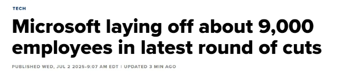 事實上,這并非微軟的首次裁員,算上5月裁掉的6000個崗位以及1月的2000個崗位,這家科技巨頭今年累計裁員比例已超7%。