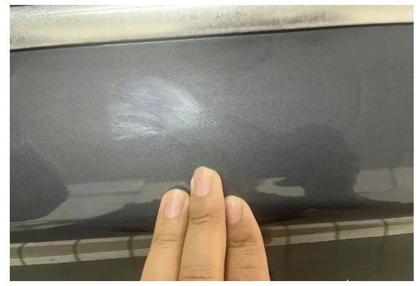 也有購買比亞迪唐2025款智駕版DM-i115KM尊榮型的網友,提車后發現新車車輛前機蓋漆面凹凸不平,經門店噴漆師傅確認為漆面殘留漆、膠導致。