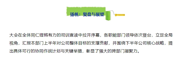 銷售團(tuán)隊(duì)負(fù)責(zé)人以詳實(shí)數(shù)據(jù)與生動(dòng)案例,全面展示上半年市場(chǎng)開拓的豐碩成果與所遇到的問題,深刻剖析當(dāng)前機(jī)遇與挑戰(zhàn)。下半年的作戰(zhàn)圖已然繪就——目標(biāo)清晰、策略精準(zhǔn)、火力集中,銷售鐵軍整裝待發(fā),誓言再攀業(yè)績(jī)新高峰!