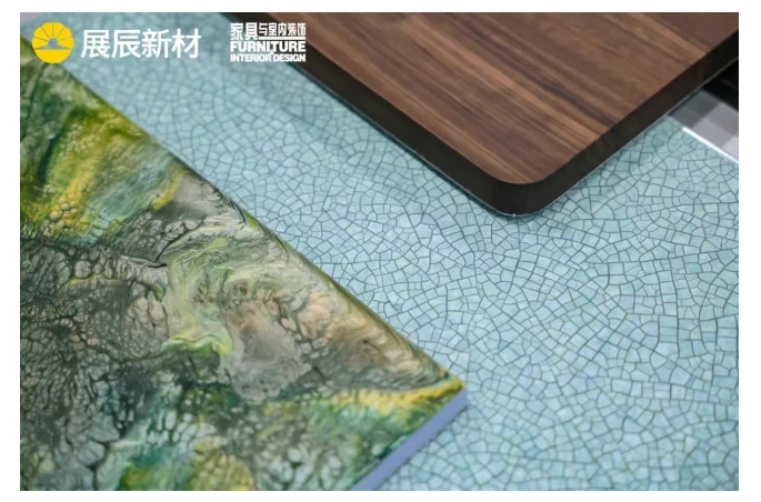 在“大美材藝”展區的聚光燈下,展辰新材戰略級產品——“愛木”高定系列迎來全球首秀。“愛木”深度融合高性能科技矩陣與前沿美學潮流,旨在為高端定制家居及設計師品牌提供頂尖的涂裝解決方案。