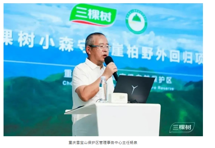本次發(fā)布會上重慶雪寶山保護區(qū)管理事務中心主任楊泉分享了小森板“崖柏保護計劃”—— 三棵樹小森板捐贈 37000 株崖柏,并通過螞蟻森林平臺開放公眾認養(yǎng)通道。從家居產品的環(huán)保升級,到自然生態(tài)的守護行動,三棵樹小森板將 “綠色基因” 從產品延伸至社會責任。這既顯示了三棵樹小森板對環(huán)保的擔當,更以崖柏 “頑強生長” 的特質呼應三棵樹 “永遠向上” 的精神。