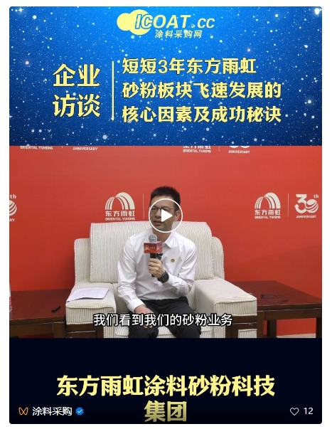 2025年7月18日,在東方雨虹迎來三十周年之際,其砂粉業務以三年躍升為集團第二增長曲線的亮眼表現,成為行業關注的焦點。在慶典啟幕前,涂料采購網等一眾行業媒體專訪了東方雨虹涂料砂粉科技集團總裁吳良凱,試圖解開這一業務板塊快速崛起的密碼。