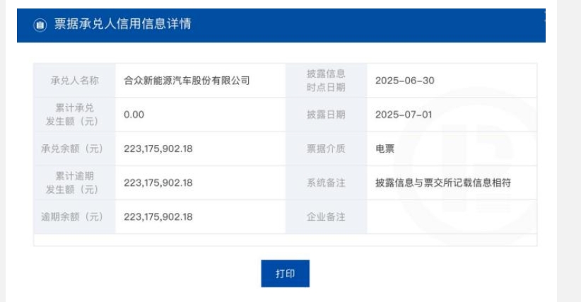 截至 6月30日,吉利集團旗下子公司漢馬科技逾期余額為937.04萬元, 累計逾期發生額達 3.72億元。票交所已暫停其商業匯票承兌服務權限,企業須清償全部逾期票據并完成信用修復流程后方可申請恢復。