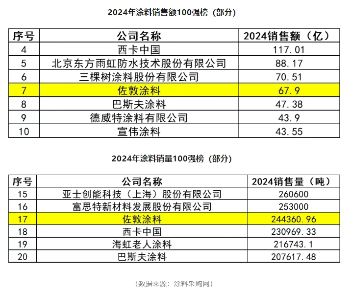 作為涂料領(lǐng)域極具專業(yè)性與權(quán)威性的新媒體服務(wù)平臺(tái),涂料采購(gòu)網(wǎng)近期發(fā)布的2024涂料行業(yè)“最賺錢”的100家企業(yè)和涂料銷量100強(qiáng)企業(yè)排行榜,引發(fā)了行業(yè)內(nèi)外的高度關(guān)注。在這兩份極具參考價(jià)值的權(quán)威榜單中,佐敦涂料表現(xiàn)亮眼,以67.9億的銷售額位列涂料銷售第七位;同時(shí),憑借24.4萬(wàn)噸的銷售量在涂料銷量100強(qiáng)中排名第17位。