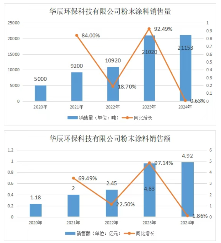進入2024年,華辰塑粉的發展步伐依舊穩健而有力。同比5年前,華辰塑粉的銷售量增長323%,銷售額增長318%,在逆勢之中實現了質的飛躍。