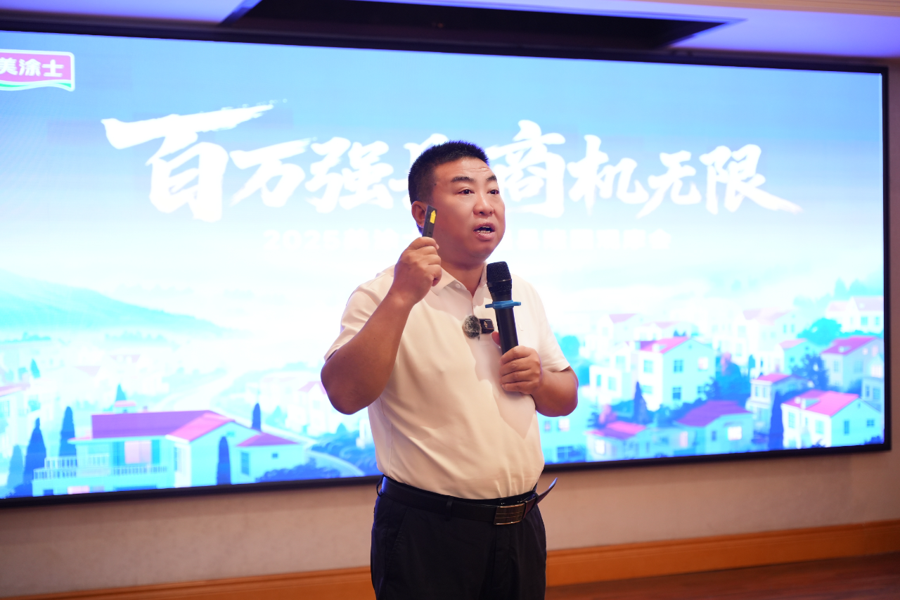 零售事業部總經理翁峰在會上發表講話,并表示,百萬強縣戰略的落地,離不開廣大合作伙伴的支持與信賴,希望所有參會伙伴能將此次會議中的所學所思,化作開拓當地市場的磅礴動力,像星星之火般點燃全國“農村包圍城市”的烽火,抱著“誓要做當地市場第一品牌”的必勝決心,成為美涂士百萬強縣的下一個成功典范!