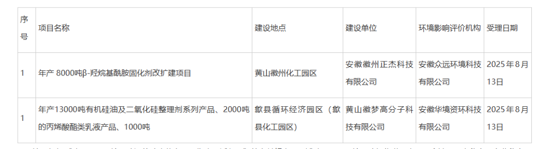 近日,黃山市生態環境局對安徽徽州正杰科技有限公司《年產8000噸β-羥烷基酰胺固化劑改擴建項目》環境影響報告書予以公示。