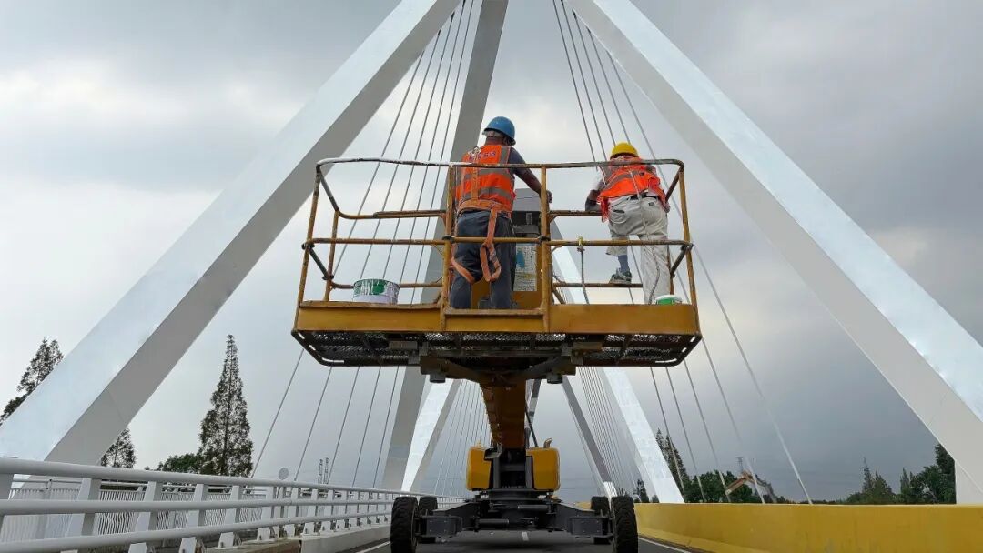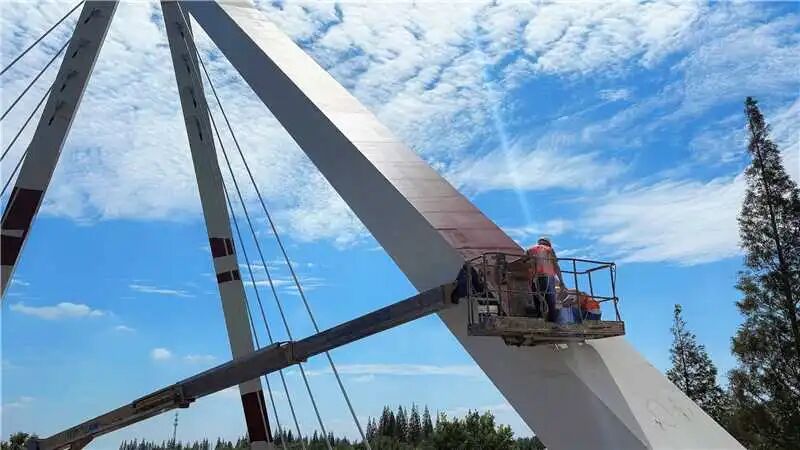 項目兼顧視覺協調與地域文化表達,通過多種顏色定制化調配,使大橋在煥然一新的同時,保持與生態景觀的深度融合,漆膜細膩、質感高級,在提升行車舒適性與安全性的同時,亦成為區域一道亮麗的風景線。