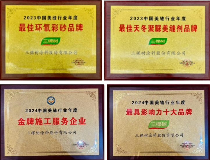 真正的行業引領者,從來都以實力贏得認可。三棵樹在美縫領域的深耕,收獲了市場與行業的雙重肯定:連續五年蟬聯“十大最具影響力品牌”,2023年更一舉拿下“最佳環氧彩砂品牌”“最佳天冬聚脲美縫劑品牌”兩項重磅榮譽,2024年還獲得“金牌施工服務企業”,印證其產品力的全面領先;近日,國內領先咨詢機構CIC灼識開展專項研究,數據顯示“三棵樹美縫劑全國零售銷量第一”。三棵樹“全屋美縫”模式已成為行業標桿,引領美縫行業從“單一產品競爭”走向“產品+服務”的綜合價值新階段。