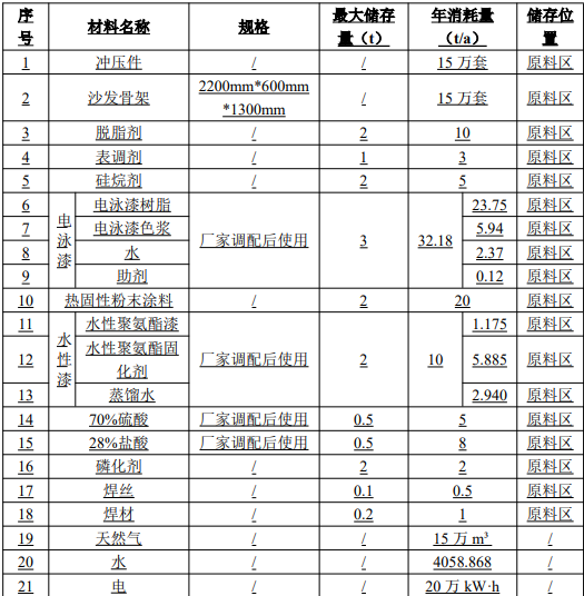 電泳漆用量核算:項(xiàng)目沙發(fā)骨架需進(jìn)行電泳工藝,根據(jù)建設(shè)單位資料, 單件工件電泳面積約為4m²,沙發(fā)骨架年用量為15萬(wàn)套,總電泳面積為60 萬(wàn)m²,約有1%的不合格工件重新電泳涂裝,每個(gè)工件厚度為15μm使用電泳漆配比為水:樹(shù)脂:色漿:助劑=10:100:25:0.5(質(zhì)量比),