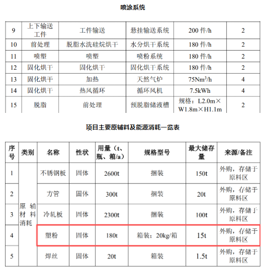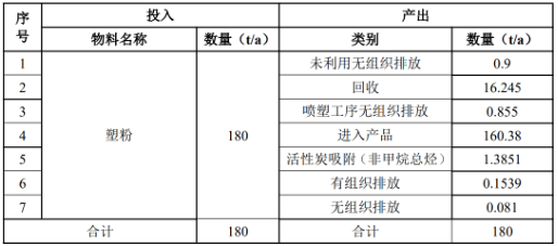 建設(shè)項(xiàng)目塑粉投入及產(chǎn)出一覽表