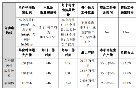 項目噴漆為產品—自動線噴漆線。根據《噴漆工序有機廢氣源強的估算比較》 可知,電泳涂裝效率為 95%以上;根據參照《汽車工業污染防治可行技術指南》(HJ1181-2021): 表 9“采用電泳超濾技術可使電泳材料利用率達到98%以上”,保守起見本項目電泳浸涂效率取95%。 參考《廣東省表面涂裝汽車制造業)揮發性有機廢氣治理技術指南》(粵環 (2015)4 號)中2.1.3 涂裝技術可知,靜電噴涂涂料利用率約為60~70%,保守起見本次評價取 60%。