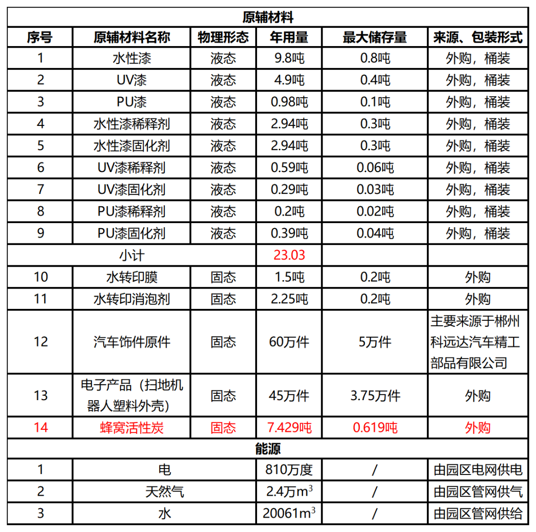 ②水性漆:以水作為稀釋劑的漆,無毒,不燃燒,屬新一代水性木器漆。不含苯、甲苯、游離TDI等致癌物質和有害重金屬。硬度高,漆膜豐滿堅韌,手感光滑細膩,抗老化性能好。高級水性透明漆及色漆,色彩豐富,漆膜豐滿,光澤持久。堅實耐水、耐磨、耐擦洗,不黃變、遮蓋力好、抗老化性能好。根據建設方提供的漆料MSDS與調漆參數,水性漆(調配后)VOCs質量比為9.375%。