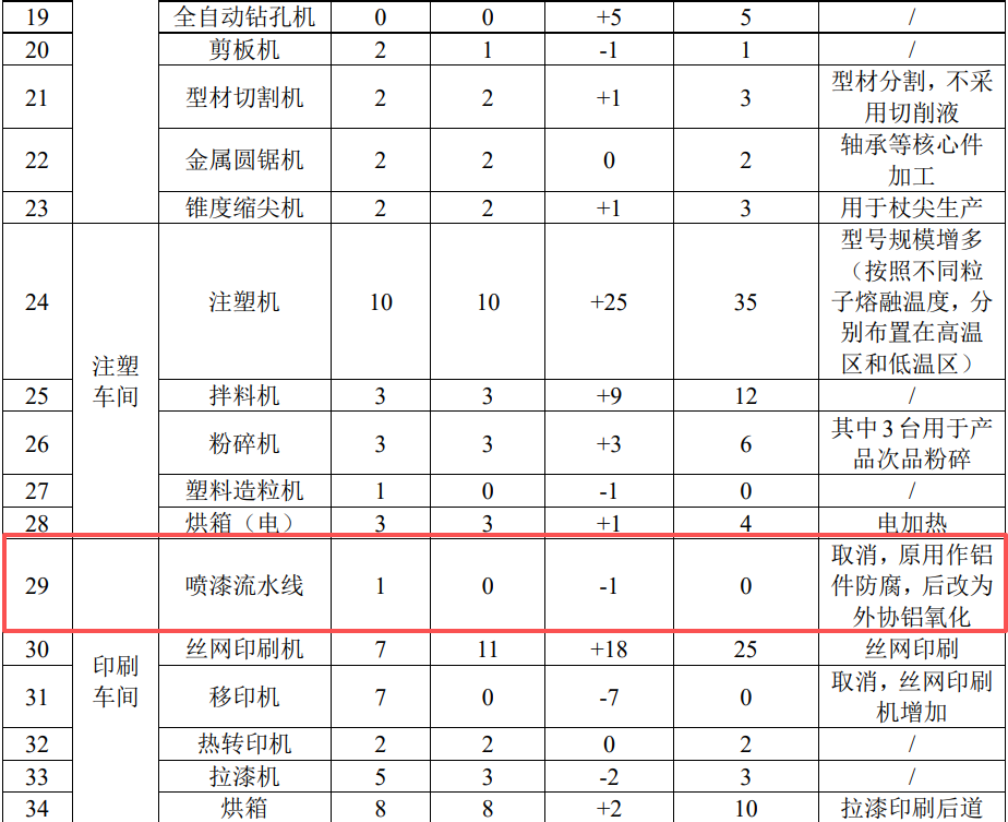③新增碳素管(運動杖零件)生產(chǎn)。對應(yīng)產(chǎn)品其它生產(chǎn)工藝不變。同步新增設(shè)備包括熱熔膠涂膠機(jī)、數(shù)控伺服脫芯機(jī)、單槽式脫BOPP帶機(jī)無心磨、磨錐機(jī)、精密半自動切斷機(jī)、立式半自動研磨機(jī)、數(shù)控卷管機(jī)、臥式數(shù)控纏帶機(jī)、注塑機(jī)等。