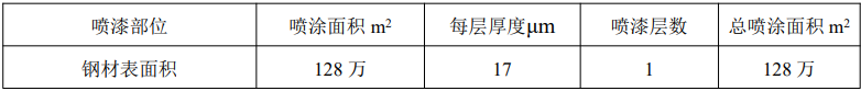 項目入廠鋼材全部需要進行預處理噴漆,一遍水性漆后進行烘干,總噴漆面積為128 萬平方米,噴漆厚度為17um。