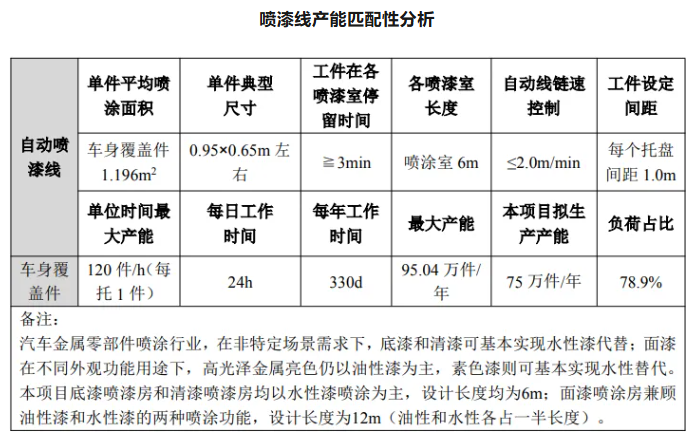 油漆用量核算 根據建設單位提供資料,項目需噴漆產品為89.700萬m2、噴粉產品為669.874萬m2、電泳產品為311.206萬m2.根據建設單位提供資料,本項目水性底漆、面漆、清漆和電泳漆均無需調配 使用。油性面漆需要調配后使用,油性漆:固化劑:稀釋劑的比例為1:0.5:0.4. 本項目噴漆產品涂裝為1層底漆+1層面漆+1層清漆,底漆漆層厚度為15μm、 面漆漆層厚度為20μm、清漆漆層厚度為30μm;電泳漆1層,漆層厚度為20μm。